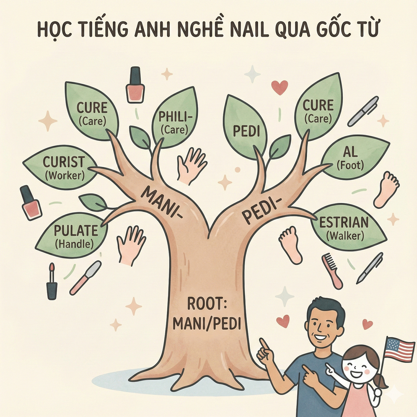 Học từ vựng tiếng Anh nghề Nail: Bí kíp “Gốc từ” giúp bạn nhớ dai, nói chuẩn, khách mê